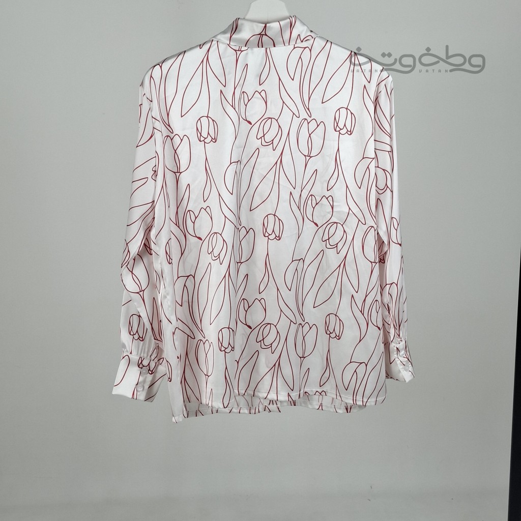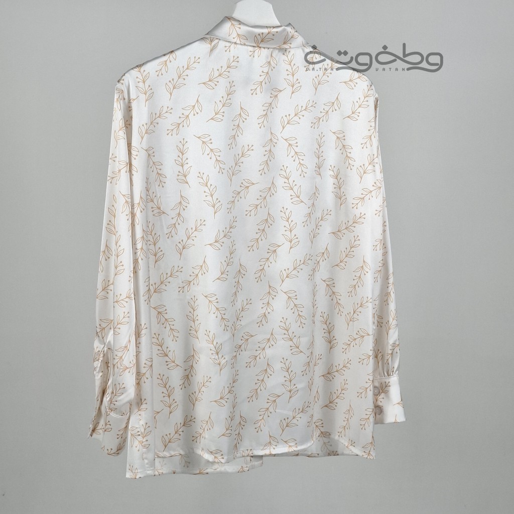 چون این شومیز زمینه سفید داره حتماااا از لباس زیر همرنگ بدن استفاده کن. نمیشه بهش گفت بدن نما. اما لباس زیر طرحدار نباید پوشید. میتونی تاپ رنگ کرم بژ یا سفیدشو بپوشی .