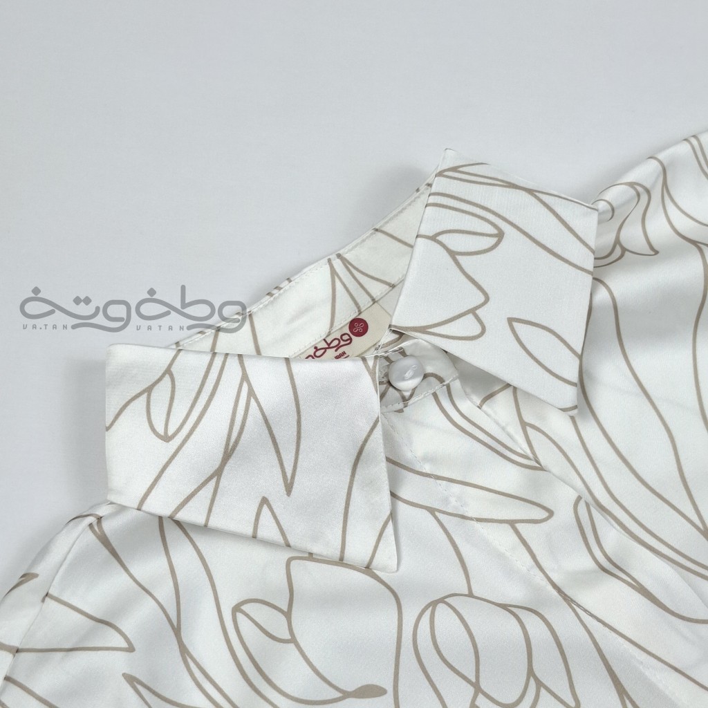از جنس ساتنه ولی نه ساتن خیلیییی برقی بورقی! خییییلی سبکه و طرحش مینیمال و مدرنه، وقتی میپوشیش استایلتو خاص میکنه. طرح گلای قشنگش هم دقیقا بهت حس طراوت و آرامشو میده. خییییلی گشتیم بتونیم این طرح رو پیدا کنیم. راستی پارچهش هم ریزشیه و تو رو کشیدهتر نشون میده. مثل بادیگرامه!!! لاغر میکنه آدمو!