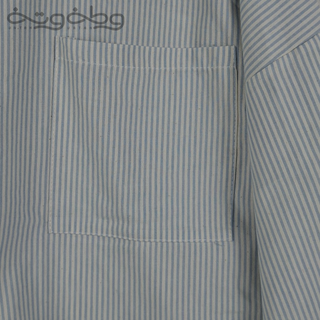 جنسش لیننه، ریزشی نیست ولی خیلی خنک و راحته. جلو بسته س و یه جیب داره. چاک نداره پشتشم یه پیلی کوچولو داره.