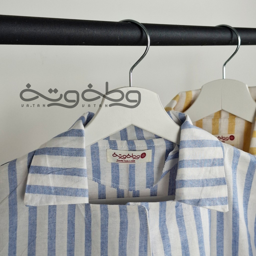 خنکیشو از تو عکساش میتونی حس کنی؟؟ جنسش لیننه و ریزشی نیست ولی خیلییییی خنک و سبکه. قواره ش آزاده. یقه ش هم میتونه انگلیسی بشه هم ساده. آستینش هم یه مدل خوشگلی داره. فیلمشو ببین حتما. پارچه ش هم آهار داره.