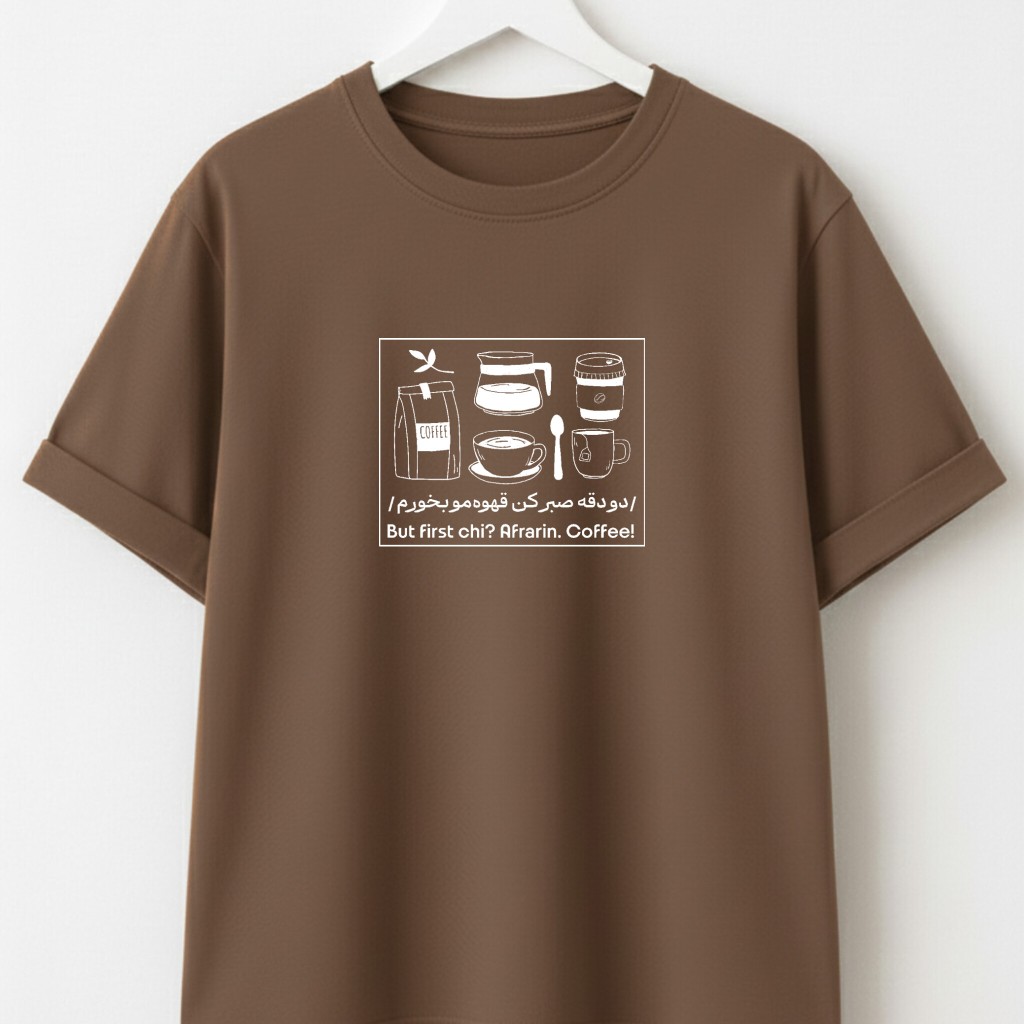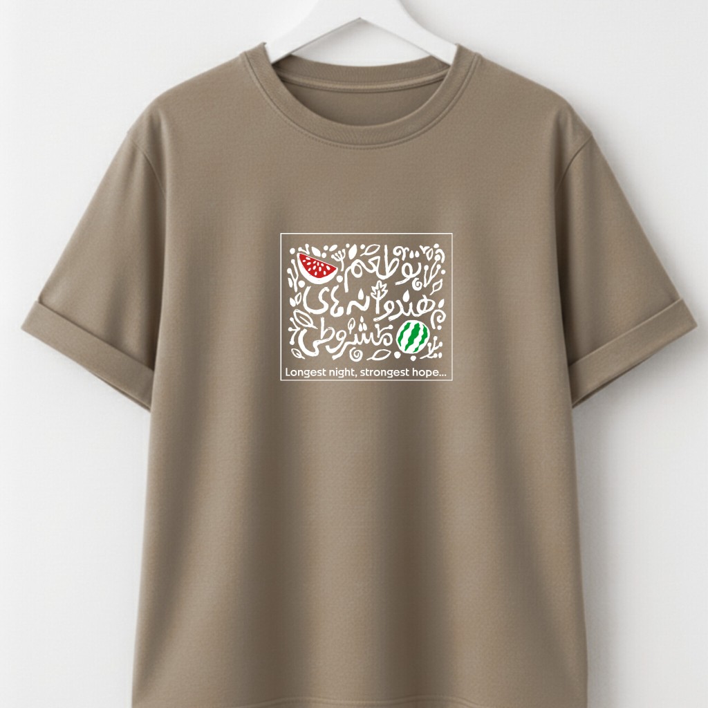 این تیشرتمون جنسش نخپنبهست و رنگهاش خیلی کاربردیه. نرم، سبک و راحتن. برای کسایی مناسبه که دوست ندارن لباس بهشون بچسبه و کاملا آزاده.