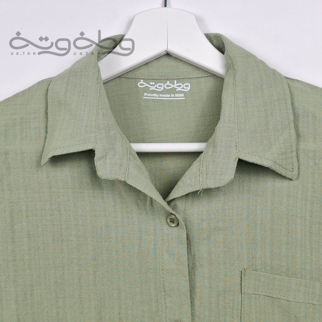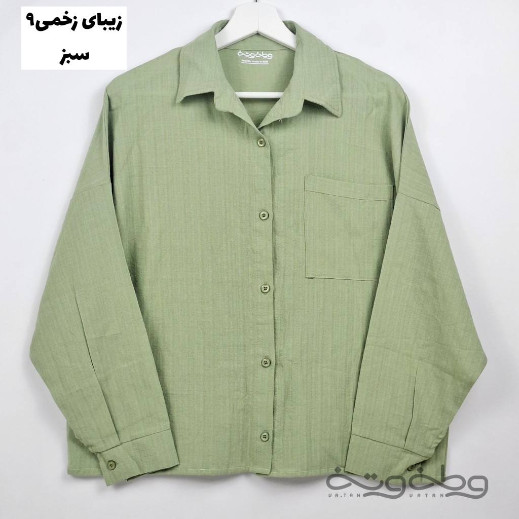 توضیح زخم شومیز سبز: یه زدگی روی پارچه جلوی شومیز، قسمت پایین داره.